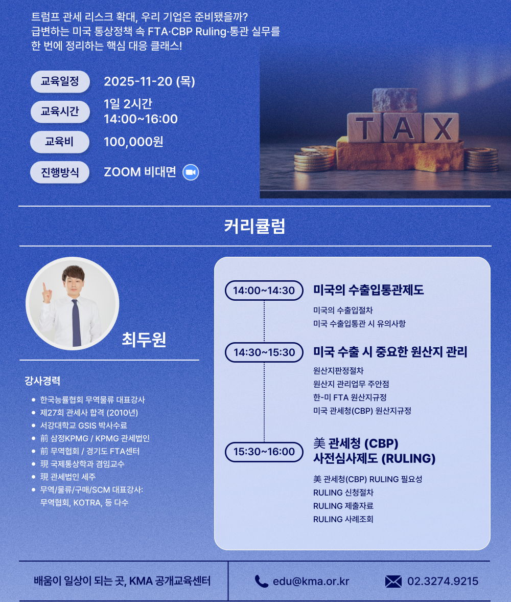 [KMA 공개교육센터] [트럼프 관세 및 통상정책과 기업의 대응] 2시간 비대면 특강 OPEN